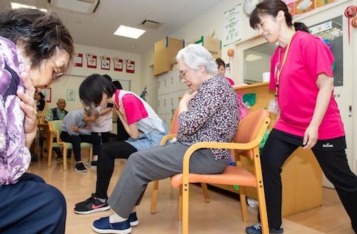 - 高津第1デイサービスセンター(千葉)では、「生協10の基本ケア」の考え方に基づき、日常生活動作をスムーズに行えるよう利用者にあった機能訓練に取り組んでいます。
